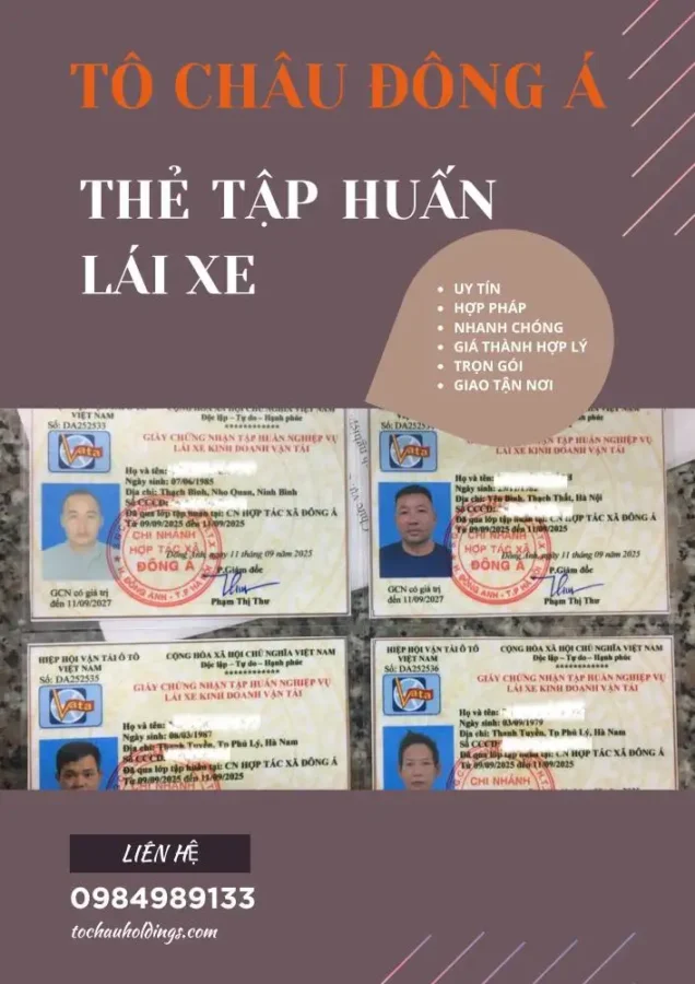 HOÀN THIỆN HỒ SƠ LÁI XE HỢP PHÁP – LÀM THẺ TẬP HUẤN NGHIỆP VỤ NHANH GỌN TẠI TÔ CHÂU ĐÔNG Á