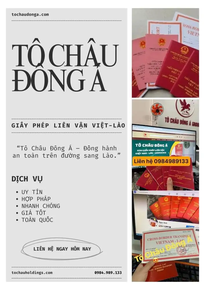 Bạn đang tìm kiếm giải pháp để phương tiện của mình chinh phục ngay lập tức hành trình xuyên biên giới Việt Nam – Lào? Chậm trễ trong thủ tục giấy tờ có thể khiến bạn mất đi các hợp đồng vận tải béo bở. Đừng lo lắng! Tô Châu Đông Á sẽ giúp bạn đơn giản hóa quy trình xin Giấy phép liên vận Việt – Lào.
