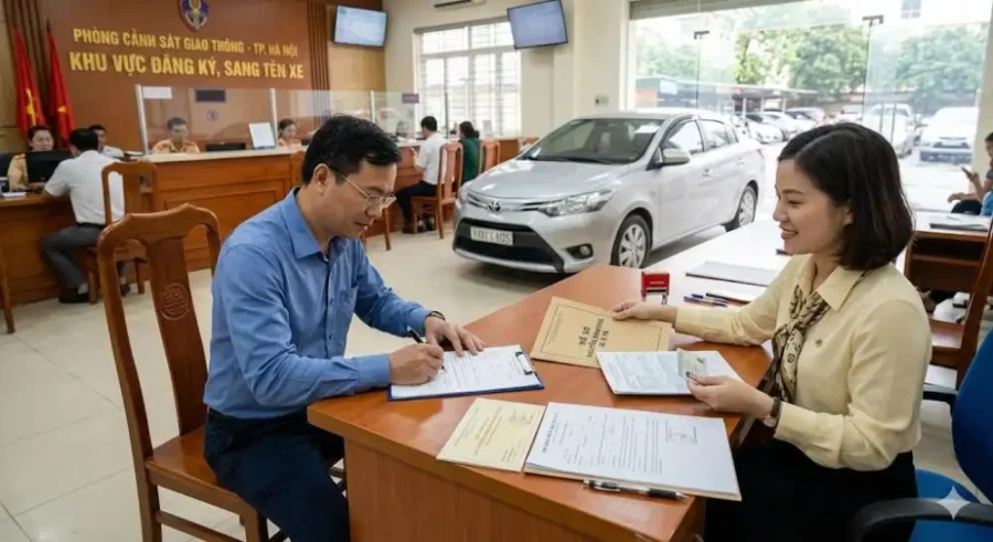 Bước 1: Nộp lệ phí trước bạ: Bạn đến chi cục thuế hoặc nộp online qua ngân hàng/dịch vụ công. Mức phí thông thường cho xe cũ là 2% giá trị xe tại thời điểm sang tên.