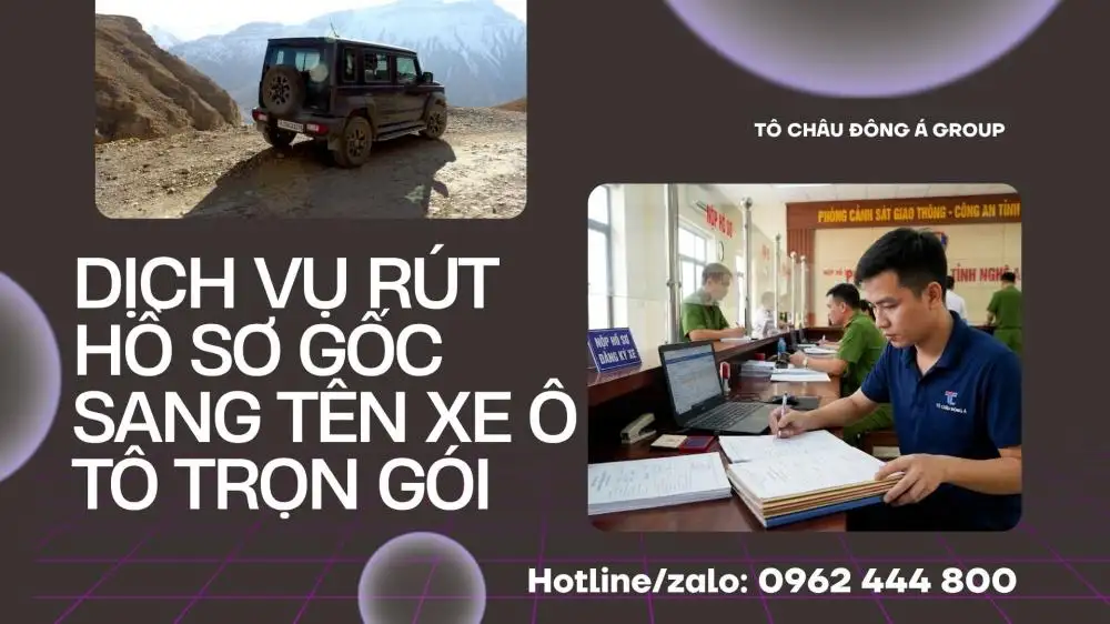 Dịch vụ rút hồ sơ gốc, sang tên xe ô tô trọn gói tại Nghệ An từ Tô Châu Đông Á. Thủ tục nhanh gọn, uy tín, hỗ trợ tận nhà tại Vinh và các xã/phường sau sát nhập. Cam kết đúng pháp luật, giá rẻ nhất.