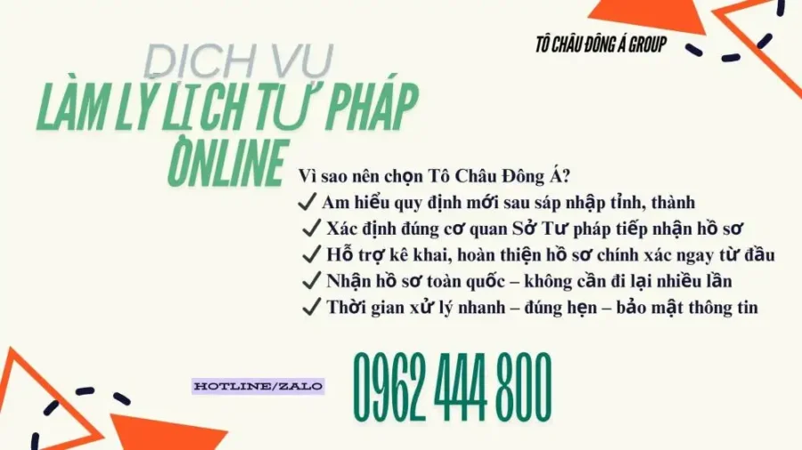Tô Châu Đông Á tự hào là đơn vị tiên phong cung cấp giải pháp hỗ trợ xin Lý lịch tư pháp tại 34 tỉnh thành mới sau sát nhập và trên toàn quốc, giúp bạn tiết kiệm thời gian, công sức và chi phí đi lại.