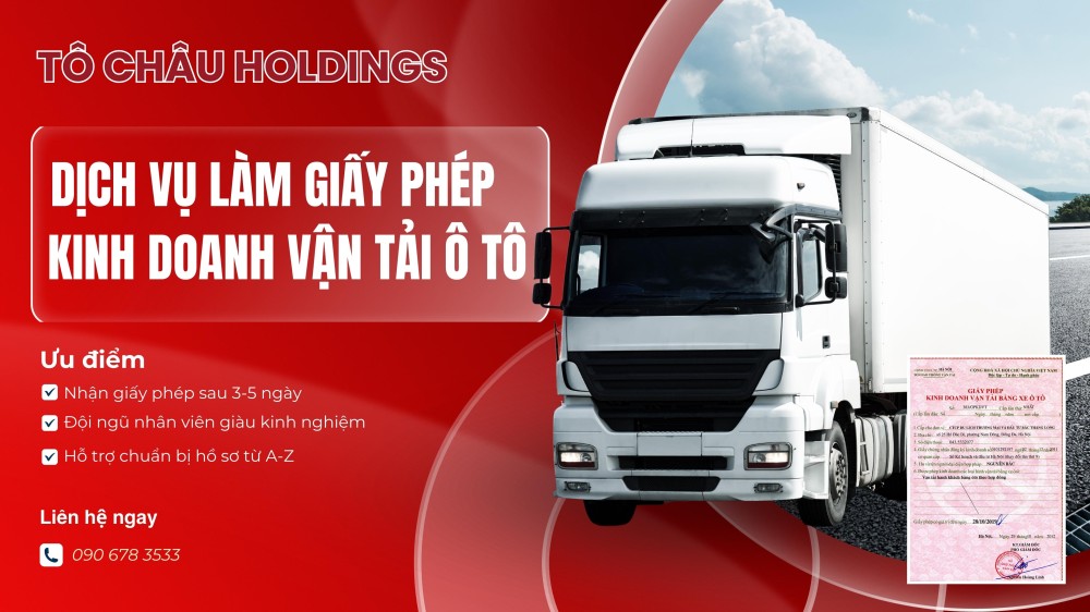 Kinh doanh vận tải bằng ô tô là việc sử dụng xe ô tô nhằm mục đích vận chuyển hàng hóa, hành khách bằng đường bộ. Để được hoạt động trong lĩnh vực này, chủ đơn vị kinh doanh phải thực hiện thủ tục xin giấy phép kinh doanh vận tải bằng xe ô tô. Có không ít doanh nghiệp trong quá trình xin giấy kinh doanh vận tải thường lúng túng không biết nên bắt đầu từ đâu hay chuẩn bị giấy tờ như thế nào? Tham khảo ngay dịch vụ xin giấy phép kinh doanh vận tải ô tô Hà Nội của Tô Châu Holdings trong bài viết sau.