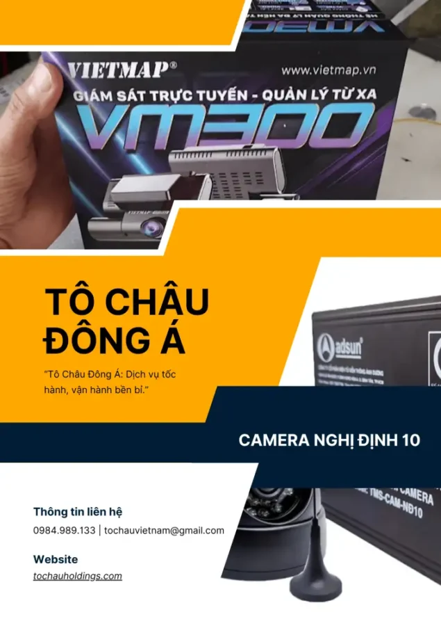 Tô Châu Đông Á chuyên cung cấp dịch vụ lắp đặt camera theo Nghị định 10 với giải pháp đồng bộ, giúp doanh nghiệp vận tải dễ dàng tuân thủ quy định pháp luật. Đơn vị cam kết thiết bị chính hãng, hình ảnh rõ nét, kết nối ổn định và hỗ trợ kỹ thuật tận nơi, mang đến sự an tâm và hiệu quả trong quá trình vận hành.